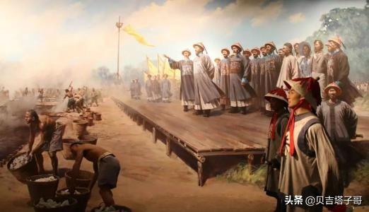 1839年6月3日,林则徐下令在虎门海滩当众销毁鸦片,至6月25日结束,共历时23天,销毁鸦片19187箱和2119袋,总重量2376254斤。